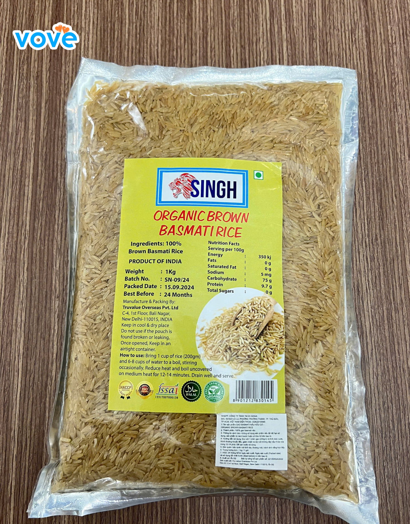 Gạo lứt Ấn Độ SINGH Brown Basmati rice, phù hợp người tiểu đường, giảm cân, 1kg